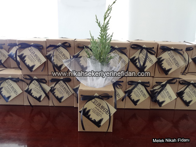 Tüm detayları özenle hazırlanan kare kutulu nikah bitkisi fidanları, Özlem ve Eren çiftimiz